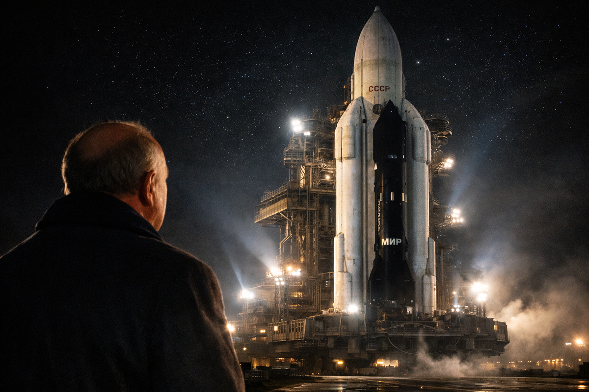 Огромная ракета «Энергия» стоит на стартовом столе и светится в прожекторах, как монумент самой себе. На её борту — груз массой около 80 тонн, который советские конструкторы официально называют «динамическим макетом». Среди журналистов, которых специально допустили на запуск, никто толком не понимает, что именно уходит в небо. Горбачёв лично приехал на Байконур накануне старта. Это само по себе говорит о многом.