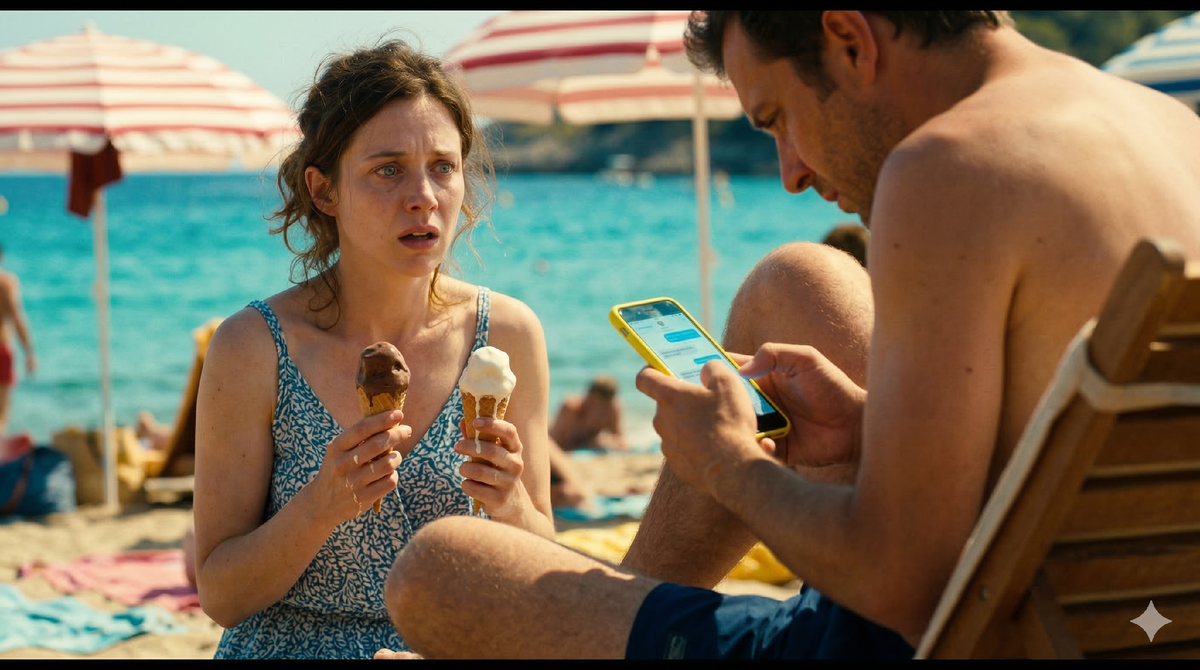 Всё началось с того, что Соня категорически заявила, что для завершения архитектурного шедевра из песка ей жизненно необходимо фисташковое мороженое. Кирилл в этот момент задремал, надвинув кепку на глаза, и я решила сходить к бару сама. Я встала, отряхнула парео, бросила свой телефон в ярком желтом чехле прямо на полотенце рядом с мужем и пошла по раскаленному песку. Очередь у бара оказалась на удивление длинной. Я простояла минут пятнадцать, болтая ни о чем с приветливой женщиной из соседнего номера. Мы успели обсудить температуру воды, анимацию и меню на ужин.