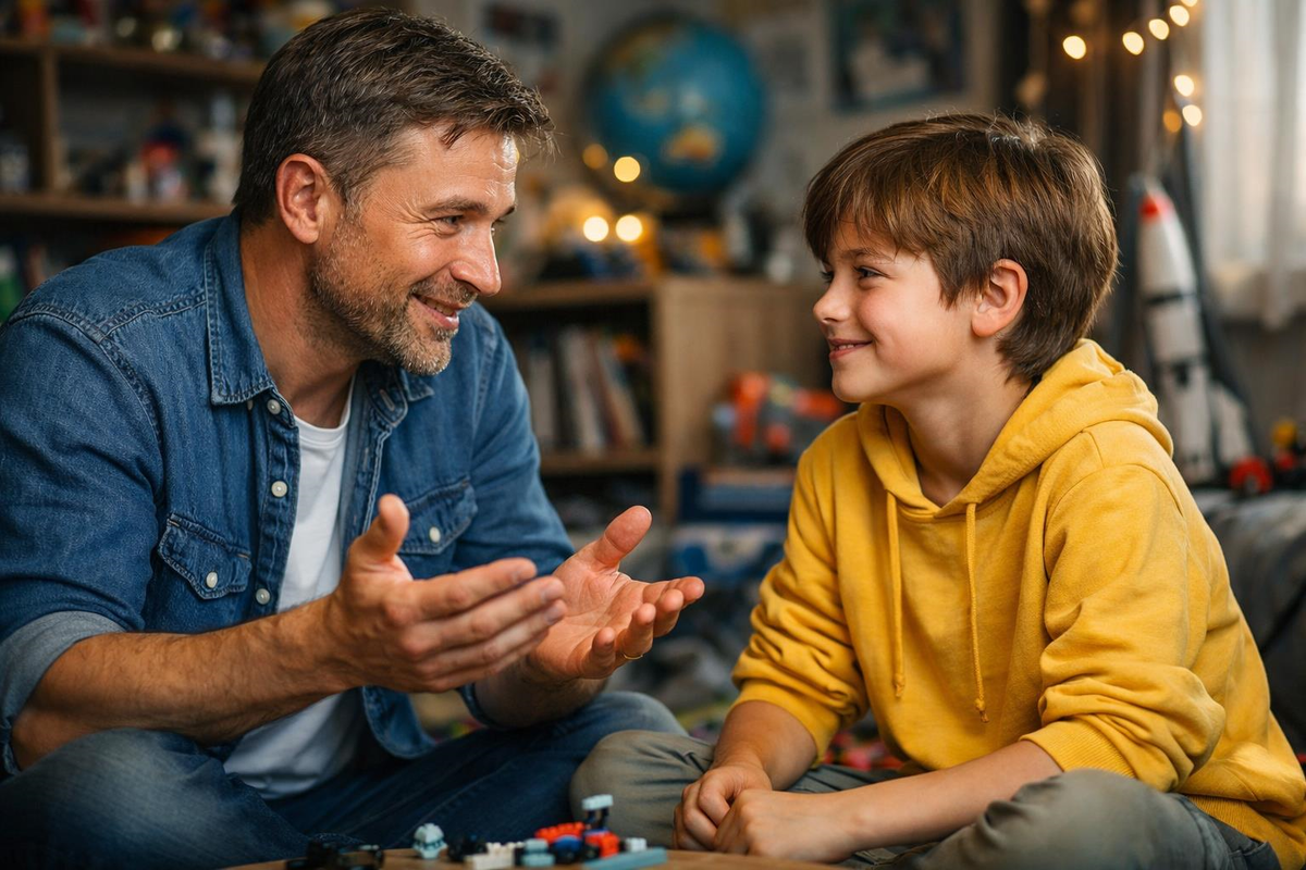 Раз в неделю устраивайте ритуал, где вы меняетесь ролями. Пусть в этот час ребёнок будет вашим тренером по видеоиграм, сленгу или рисованию динозавров, а вы будете прилежным и немного бестолковым учеником. Это снимает напряжение в борьбе за власть и превращает обучение в увлекательную игру, где каждый имеет право на экспертность.