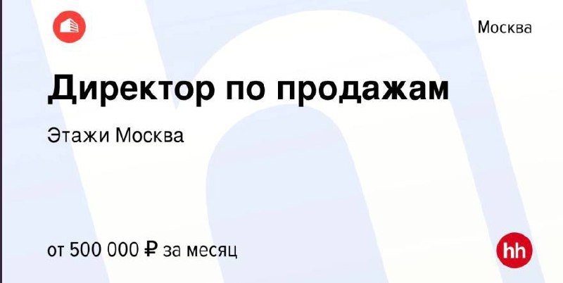 🤓А Этажи повысили ставку директора по продажам в Москве