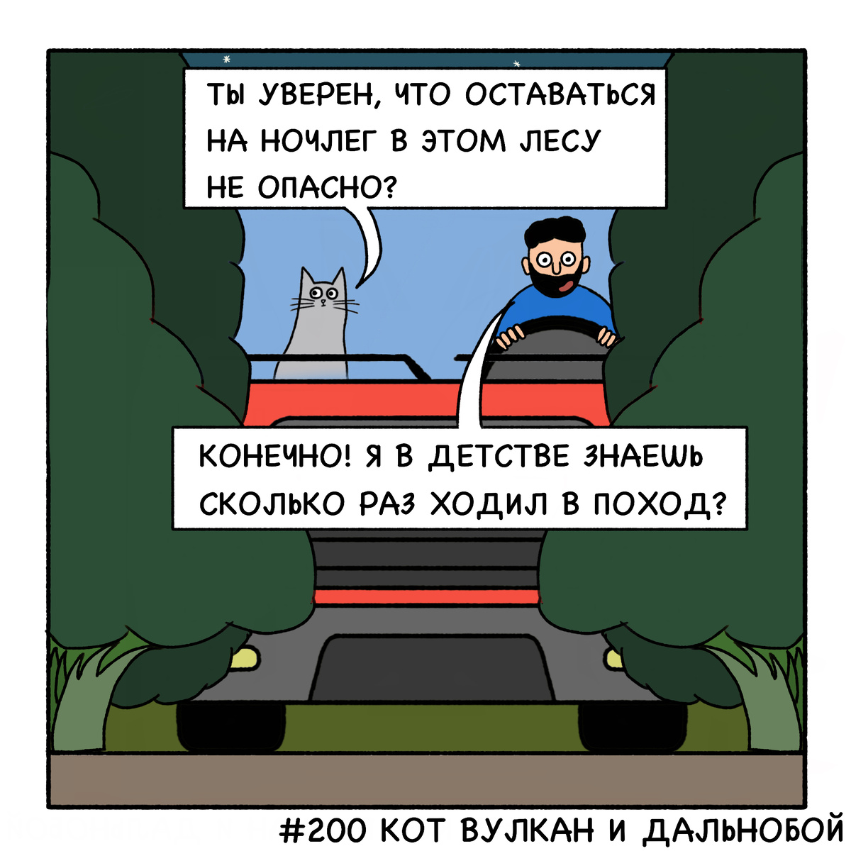Начнём с комикса про уроки выживания. Или как действовать, при встрече с косолапым в лесу по версии кота Вулкана и дальнобоя:
