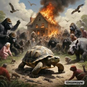 Это старушка спешит на пожар. Бабушка та, что спешит в этот час,