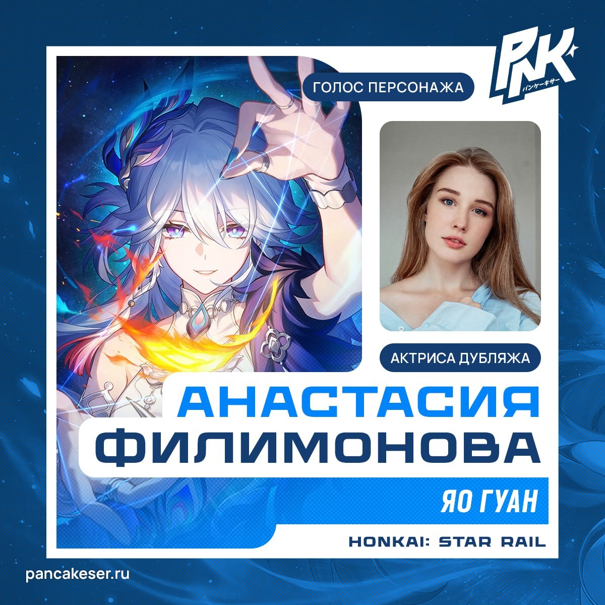 ✨ Яо Гуан: Анастасия Филимонова В нашем русском дубляже Honkai: Star Rail за невозмутимую, готовую на всё и чуть-чуть неловкую Яо Гуан отвечает Анастасия Филимонова — официальный голос Неон в «Valorant», Труд в «God of War: Ragnarök», Зери в «League of Legends», Резе в «Человек-бензопила» и множества других героинь! Смотреть релиз на 📹 YouTube