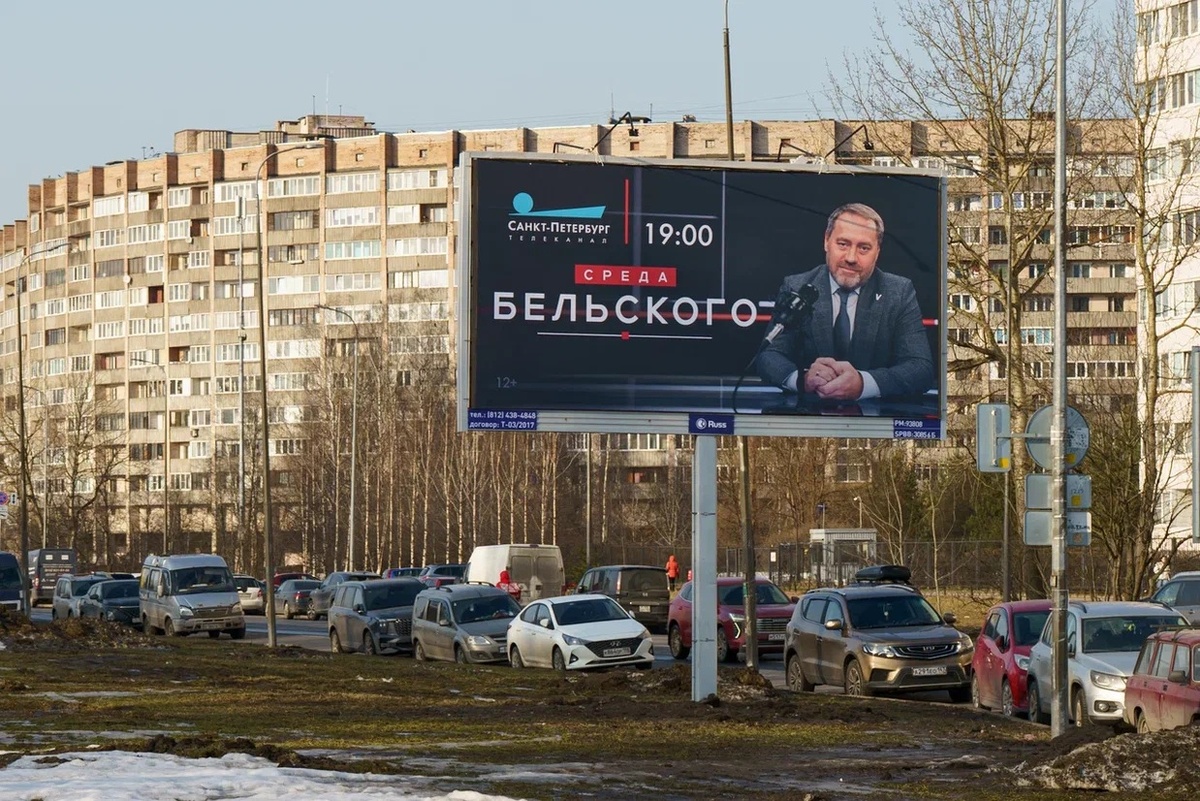 На улицах Петербурга появились билборды с портретом председателя Законодательного собрания Александра Бельского, обратил внимание корреспондент ЗАКС.Ру 11 марта. Это реклама некоего эфира на телеканале "Санкт-Петербург". Предположительно, программа будет выходить по средам, в дни пленарных заседаний городского парламента, в 19:00. Кроме билбордов, реклама с Бельским транслируется и с мультимедийных экранов в самом центре Петербурга - на площади Восстания. Как рассказала ЗАКС.Ру начальник пресс-службы Заксобрания Наталья Жохова, программа будет выходить на городском телеканале дважды в месяц. Она будет называться "Среда Бельского". Первый эфир запланирован на середину марта. Председатель будет рассказывать о работе парламента и обсуждать резонансные события в Петербурге, России и в мире. В кадре он будет не один - ведущим программы станет Юрий Зинчук, который периодически ведет трансляции с членами правительства, и в частности с губернатором Александром Бегловым. За полгода до выборов Б