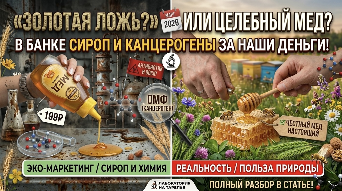 1. Китайский след. Дешевый мед массово бодяжат глюкозно-фруктозным сиропом (ГФС). Он стоит копейки, выглядит точь-в-точь как свежий мед и не кристаллизуется годами. Никаких витаминов и ферментов в нем нет — это пустые, вредные углеводы, бьющие по поджелудочной.