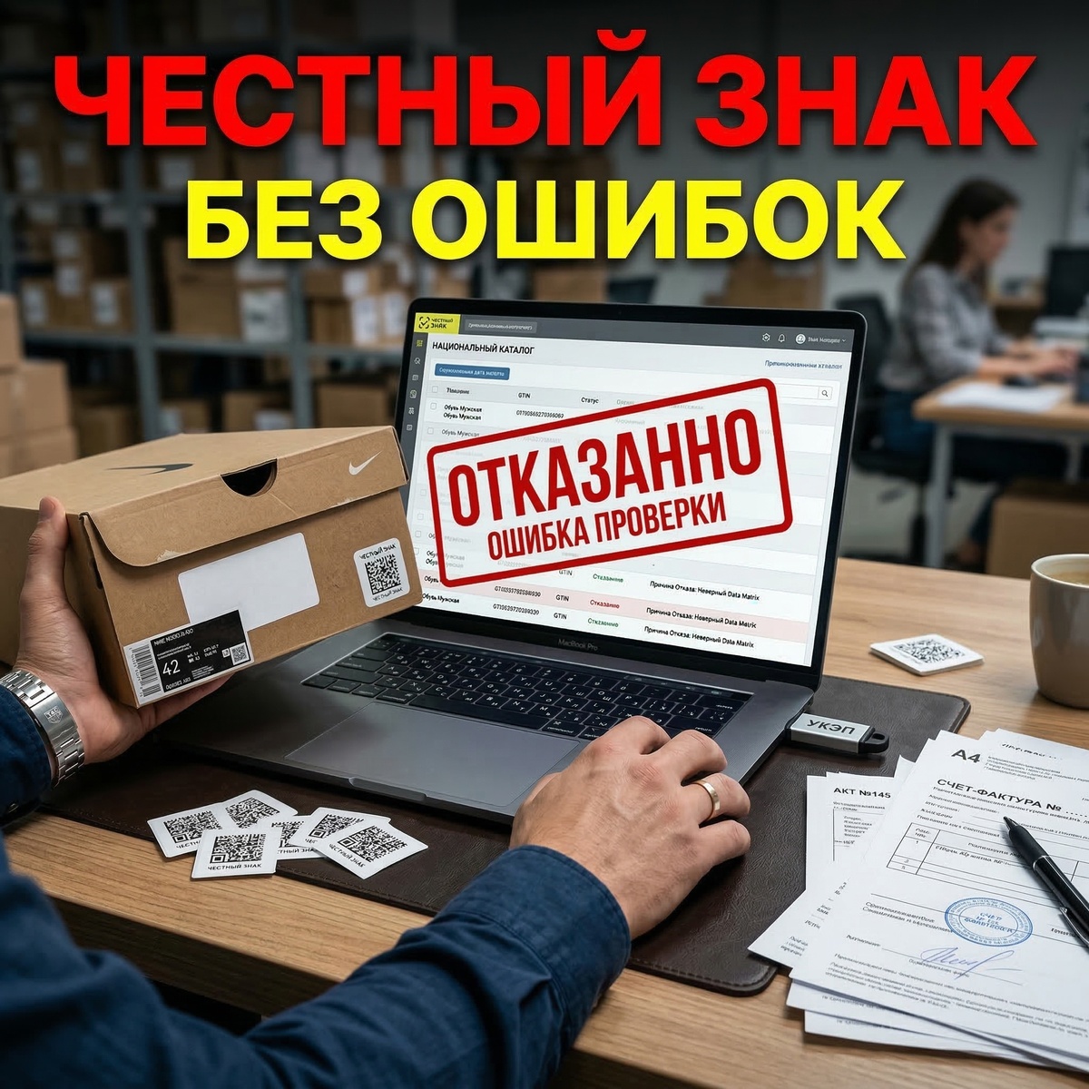 Недавно ко мне пришел клиент: фура с обувью стынет на складе, сроки горят, а в Честном ЗНАКе висит отказ по всем 500 карточкам товаров. Он думал, что красные и синие кроссовки одного фасона это один и тот же штрихкод. Рвануло но не в ту сторону. Цена ошибки замороженный миллионный оборот. Хотите так же?