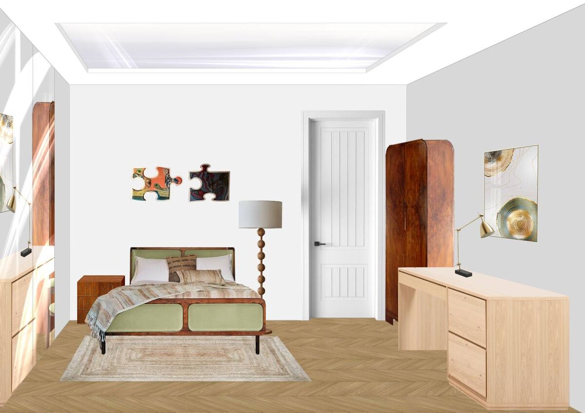 ! 👋 Сегодня хочу показать два свежих коллажа и немного рассказать про процесс через таймлапс. Бывает такое, что дизайнеры дают не все модели или присылают такие, над которыми ещё нужно попотеть. 😅 Вот, например, в спальне для подростка — на таймлапсе видно, как я реставрирую шкаф, кровать, тумбу и стол. Всё, что нужно, делаю сама — начиная с мелочей. А в санузле строила тумбу с нуля! Главное тут — понимать геометрию и конструкцию. 👩🎨✏️ Честно, иногда процесс затягивает: классно наблюдать, как из ничего появляется что-то крутое! Надеюсь, вам понравится — смотрите, вдохновляйтесь и, если есть вопросы, пишите! 😁✨