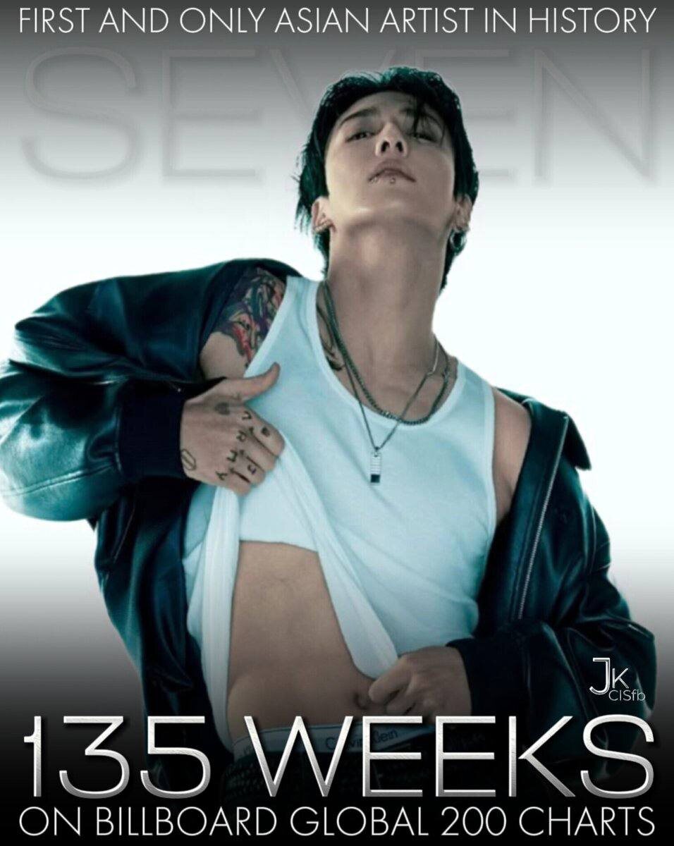💫 Чонгук становится первым и единственным к-поп исполнителем, чья песня (Seven) провела 135 недель в чарте Billboard Global 200!