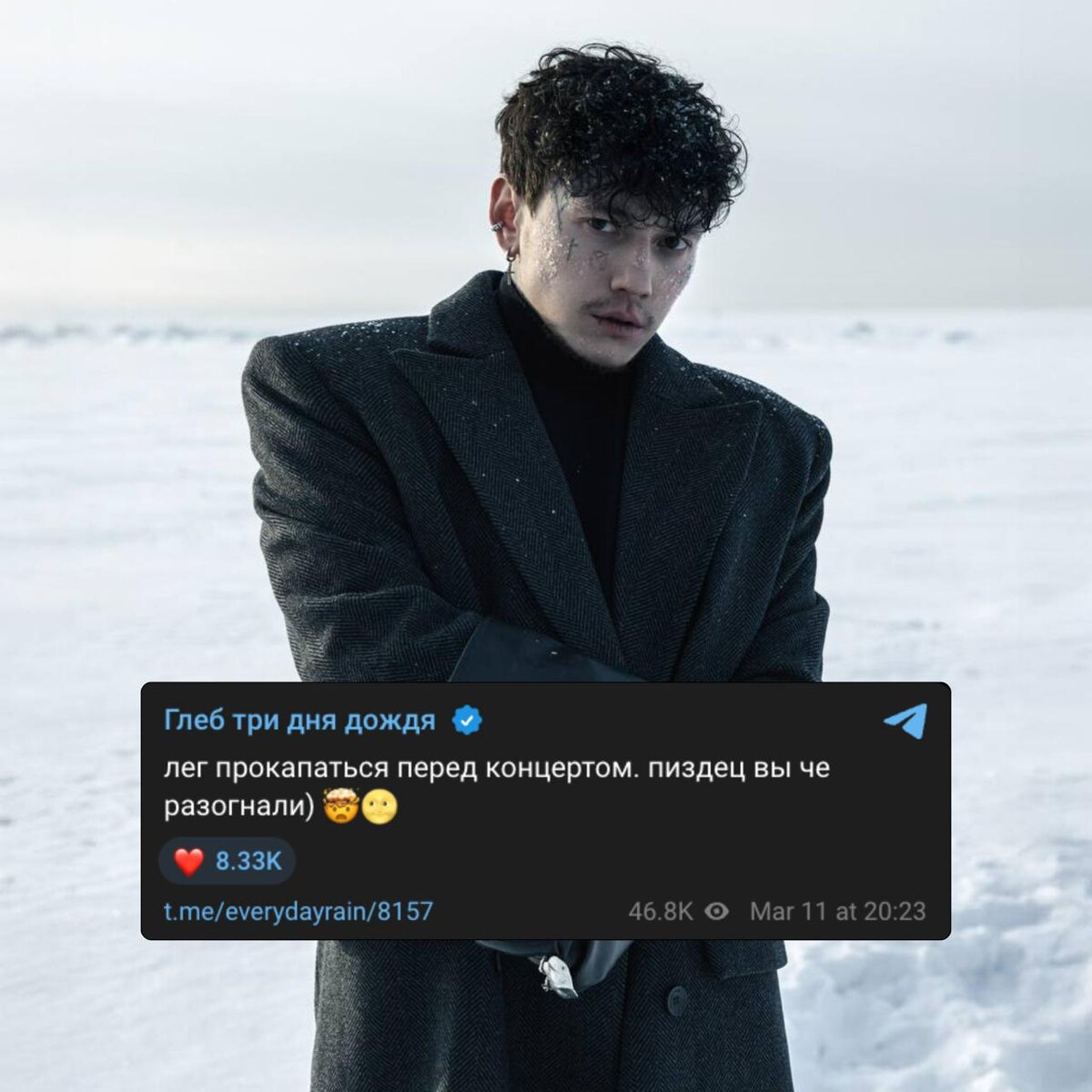 Последняя неделя для Глеба выдалась очень насыщенной: от приятной новости о том, что он во второй раз стал отцом, до слухов о том, что артист якобы снова оказался в рехабе — из-за чего судьба ближайших выступлений на время оставалась туманной. Сегодня музыкант довольно лаконично прокомментировал всю суету вокруг своей персоны в последние дни: «лег прокапаться перед концертом. п**дец вы че разогнали», — прокомментировал артист в телеграм-канале. ❤️ — Глеб красавчик, тг-каналам лишь бы суету наводить 😈 — не верю, я слишком хорошо знаю Глеба @mainstreamusic