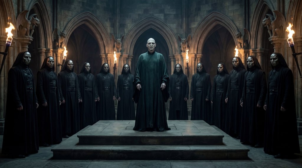 Волдеморт создал не просто организацию, а религию с самим собой в центре. Он запретил произносить своё имя (кроме тех, кто носит метку — они могли, но тоже с трепетом). Он требовал абсолютной преданности и наказывал за малейшее неподчинение смертью. Помните, что случилось с семейством Лестрейндж, когда они не нашли Гарри? Беллатриса попала в Азкабан, но её муж и шурин сошли с ума от страха перед гневом Лорда.