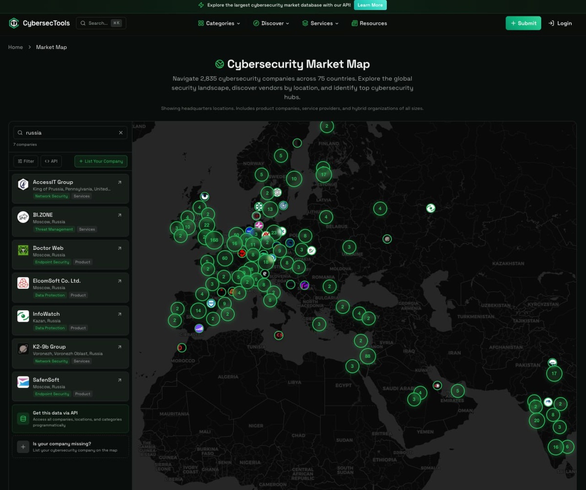 ⭐️ карта компаний по кибербезопасности во всем мире. Спасибо Алексею Ермолаеву за наводку. 🔹 2835 компаний и они продолжают добавлять сами себя 🔹75 стран представлено, включая Россию, а где остальные? #карта #кибербезопасность #ДляВсех @acba