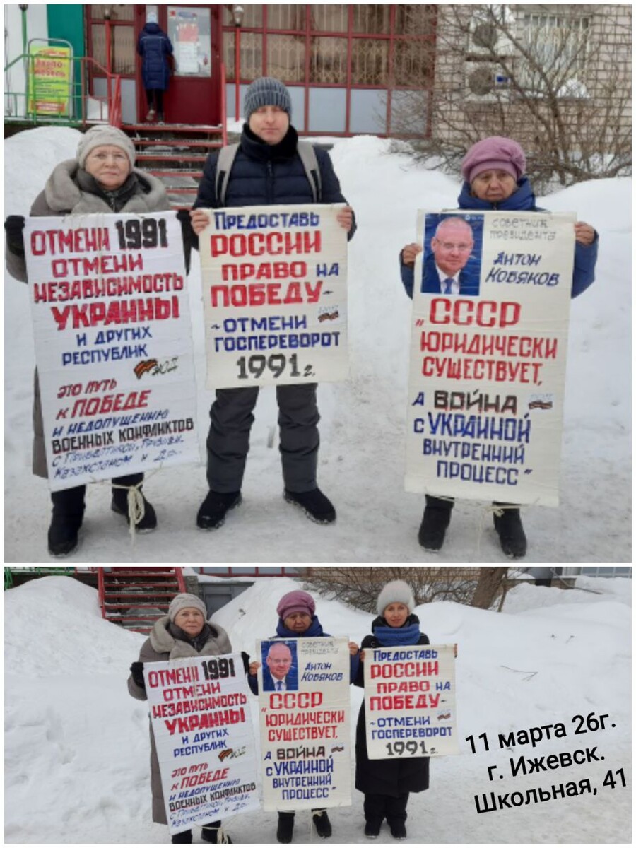 «Иран разрушает сакральность США, которых нельзя убивать, трогать, стрелять по ним, что нам в голову даже не может прийти, потому что российская власть по-прежнему рассматривает Америку как начальство. Иран благодаря ошибке американцев, которые ликвидировали всё управление страной, создал национально-освободительное движение — временную форму власти на переходный период (см. документы ООН)», — заявил политик в интервью 7 марта. «Мир выяснил, что американцев можно бить. А раз их можно бить, то может быть они и посыпятся, и надо серьёзнее отнестись к Путину и Национально-освободительному движению в России. И это даёт нам шансы решить свою проблему суверенитета», — пояснил Евгений Фёдоров. Присоединиться к иску по отмене незаконной независимости Украины и реформ Горбачёва можно по ссылке gorbsud.ru 11. 03. 26г г. Ижевск, Школьная, 41 Митинг в поддержку курса Путина на возврат суверенитета. 43 соистца.