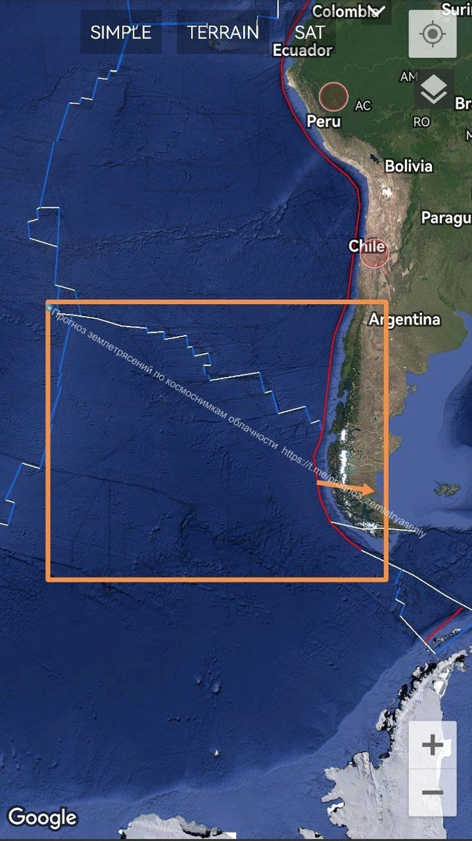Антарктикой. Картина тянет на М8+. Если сегодняшняя "расческа" на сонограмме захочет проиграться крупным событием, то даная зона будет занимать топ-1 в моем списке фаворитов. Похожие картины наблюдались перед серией землетрясений М7+ в проливе Дрейка в прошлом году. ===== I have great concerns about Chile, where there have been long tracers between the Nazca Plate and Antarctica for two days in a row. The zone draws CSTIs of the M8+ level. Similar patterns were observed before the series of M7+ earthquakes in the Drake Strait last year.