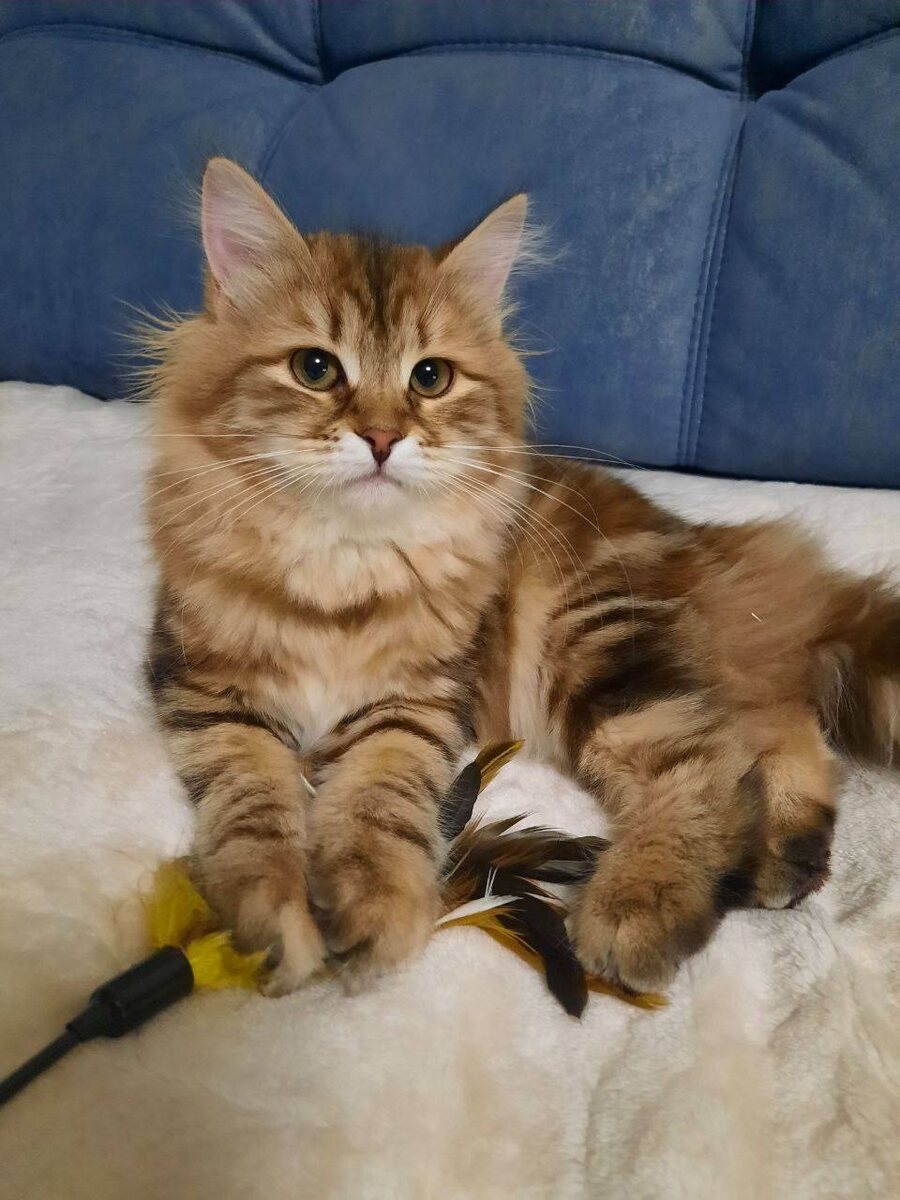 Добрый вечер. А вот и Хлоя. Сфотографировать сфокусированно невозможно. Спит со мной, ест,играет, всё как положено.