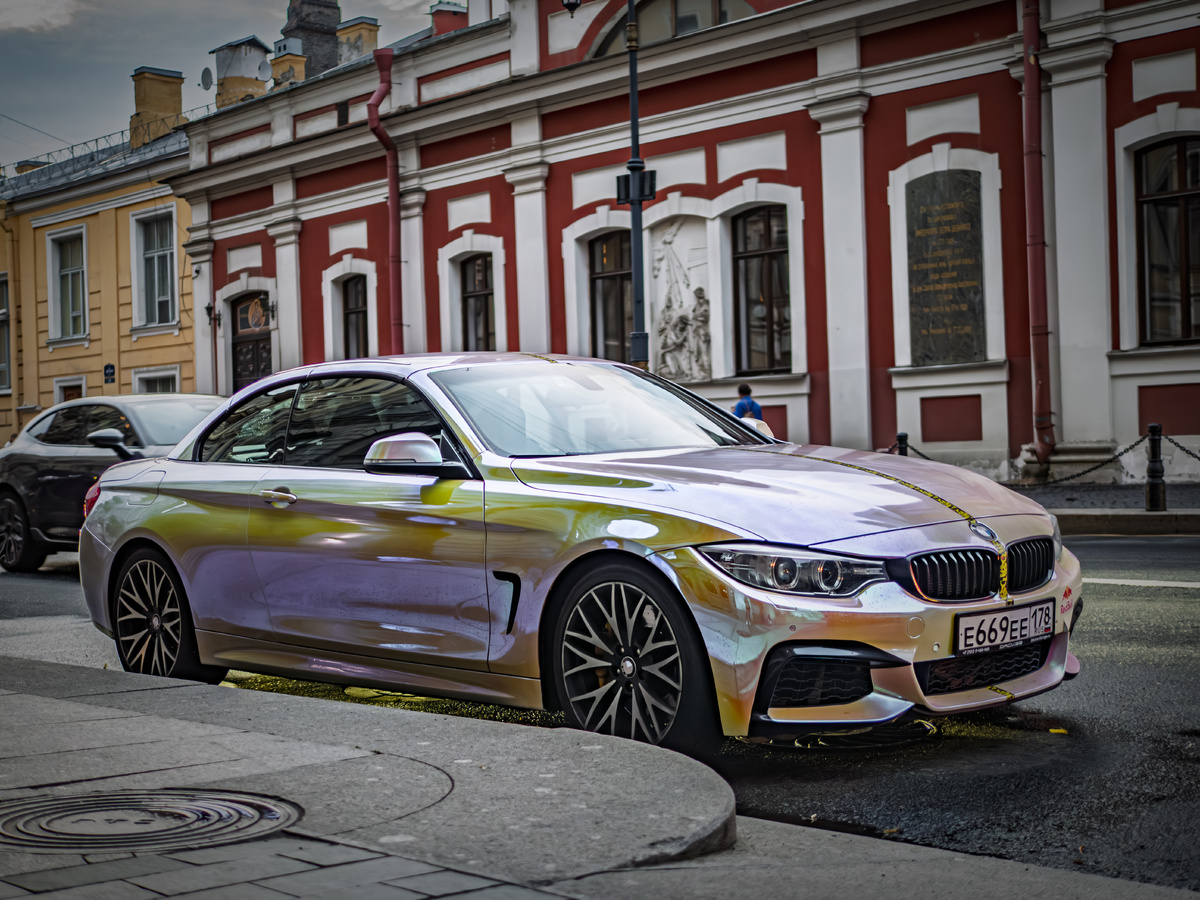 Питер подбрасывает сюжеты на ровном месте 🏙️. Идешь по центру, настраиваешься на классику, и тут прямо у обочины – привет из будущего 🏎️. Мы с Настей буквально замерли, когда увидели эту BMW в голографической пленке ✨. Машина переливается всеми цветами, как нефтяная пленка в луже, но смотрится это на редкость стильно 💎. В кузове отражаются старые фасады, и такой стык технологий с историей реально впечатляет 🤯. Самый сок был через мгновение. Настя случайно поднесла руку к крылу, и мы просто выпали в осадок 😱. Ее свежий маникюр один в один, тон в тон совпал с цветом этой тачки! 💅 Настя смеется, говорит, это явный знак, и теперь нам жизненно необходим такой кабриолет 😂. В этом городе подобные совпадения случаются постоянно. Питер будто подыгрывает тем, кто не втыкает в телефон, а смотрит по сторонам. Дальше наш маршрут лежал в сторону улицы Пестеля. Там стоит очень эффектная церковь Святого Пантелеймона ⛪. Красные стены с белой отделкой на фоне тяжелых туч выглядят мощно ☁️. Обожаю