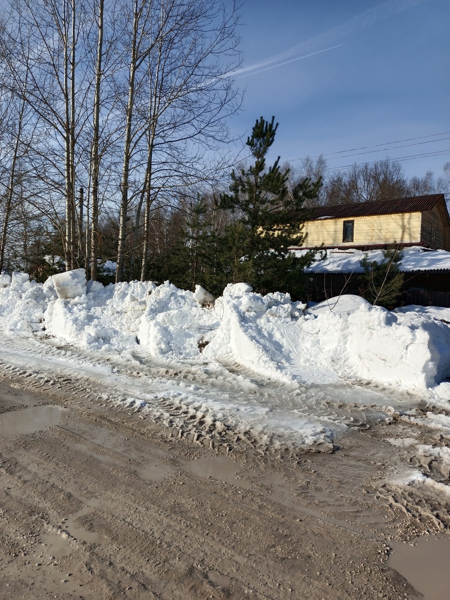 Прислали фронтальный погрузчик. Дорогу широко расчистить. Тракторист-вандал. Сгребал снег прям на деревья. Ломая их. Множество молодых сосен и других посаженных деревьев были подключены им. При этом его начальник был тут тоже. Орал на его, мол деревья не трожь! А тракторист положил болт на всё и давай мстить. За наши жалобы. Что дорогу не чистят.