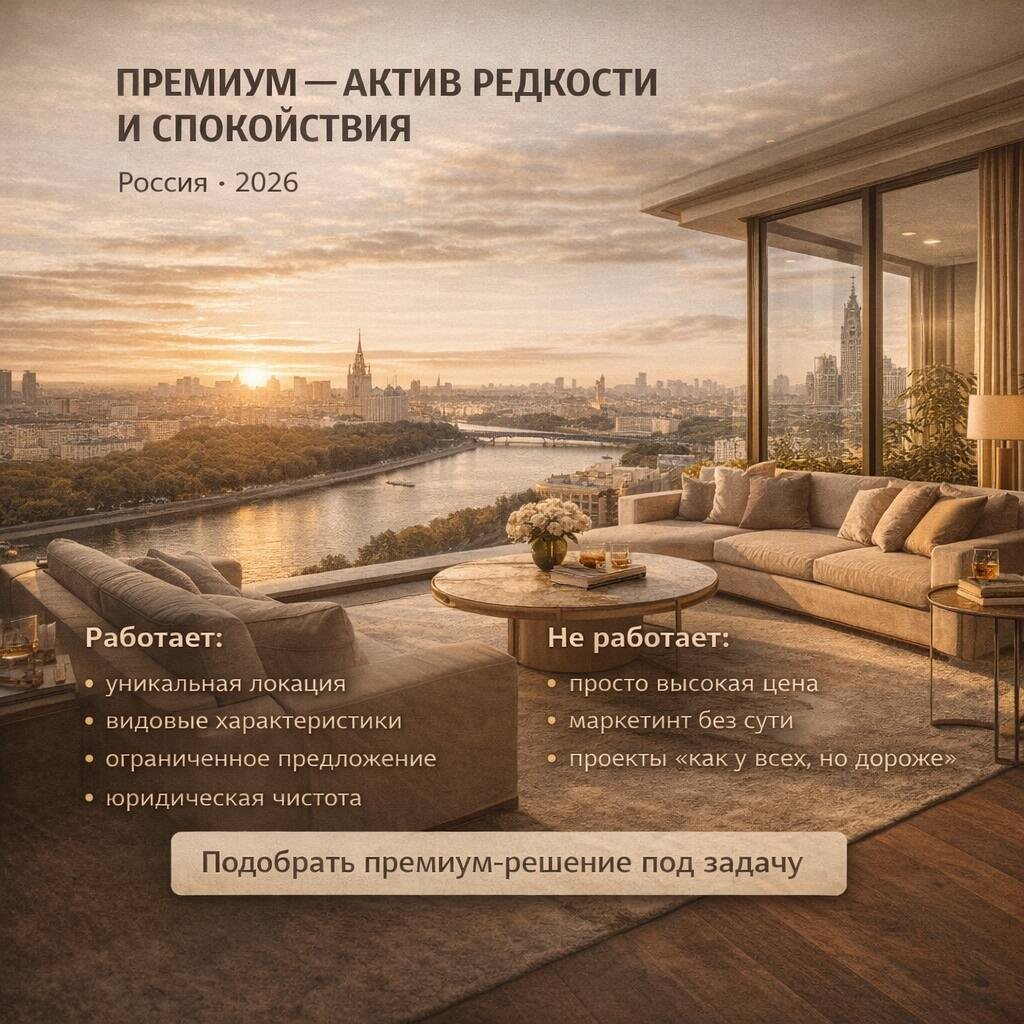 Премиум-недвижимость в России в 2026 году живёт по своим законам. Её покупают не из-за ставки. И не из-за льгот.