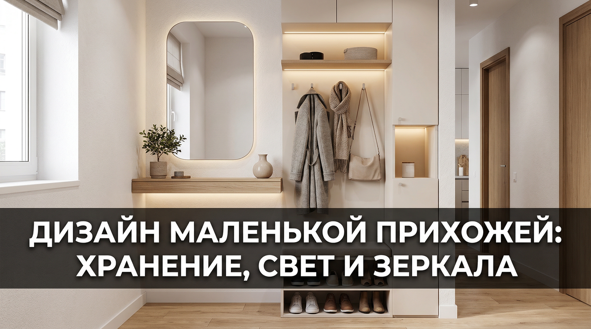 Маленькая прихожая в 3–5 м² — реальность большинства российских квартир: хрущёвок, брежневок и даже многих новостроек. Главная проблема — как уместить верхнюю одежду, обувь и сумки, при этом не превратить вход в квартиру в тёмный захламлённый тамбур. Решение — в трёх вещах: продуманное хранение, правильный свет и зеркала. Если выстроить эту тройку грамотно, даже прихожая в 2,5 м² будет выглядеть аккуратно и работать без сбоев.