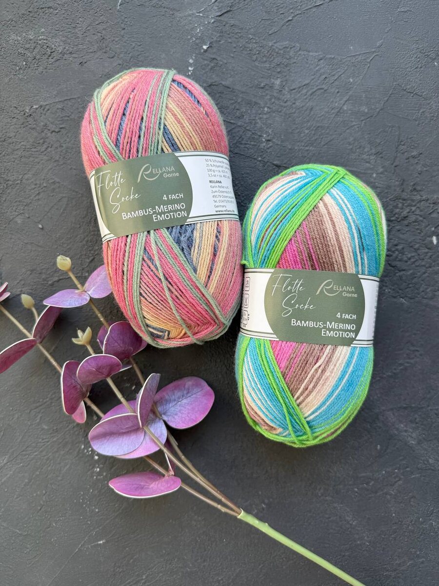 ❤️ 👢Rellana Flotte Socke Bambus Merino Spot 👢Rellana Flotte Socke Bambus Merino Emotion 🌟Пряжа с мериносом и бамбуком в составе для вязания носков и других изделий. 🌟Бамбуковая вискоза обеспечивает отличный воздухообмен и гигроскопичность и обладает антибактериальным и дезодорирующим действием. 🌟Небольшое количества полиамида увеличивает износостойкость ваших носочных изделий. 🌟Идеально подойдет для вязания вещей и аксессуаров для всех возрастов и даже самой нежной кожи. 🌟Нить обработана при помощи технологии супервош, изделия из нее можно стирать и сушить в машинке. 🌟Расход: для пары взрослых носков до 46 размера будет достаточно 1 мотка пряжи 🌟Уход: машинная стирка при 40 градусах.