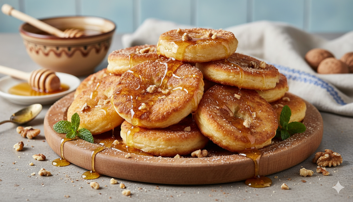 Есть особое очарование в кухне древних греков. Она проста, почти аскетична — но в этой простоте чувствуется дыхание солнца, моря и оливковых рощ. Когда читаешь строки Гомера или страницы Аристофана, между описаниями героев и шутками комедиографа вдруг проступает повседневная жизнь: ломоть хлеба, сыр из овечьего молока, чашка вина, разбавленного водой, и немного меда. Еда для греков была не столько роскошью, сколько гармонией — частью того самого идеала μέτρον (меры), который они ценили во всем. На столе чаще всего были три вечных спутника Эллады: хлеб, оливковое масло и вино. Но среди этой простой пищи встречались блюда удивительно изящные. Одно из них — τηγανίτες (тэганитес), древнегреческие медовые лепешки. Это своего рода предки современных блинчиков. О них писал еще Афиней Навкратийский, рассказывая о лепешках, жаренных на оливковом масле и политых медом. Попробуем приготовить их сегодня — почти так же, как это делали в античной Элладе. Название происходит от слова tēganon — «сково