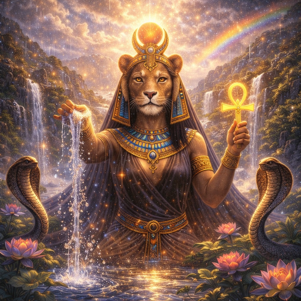 Она не символ беспредельного потока, не образ потопа, не стихия без границ. Она — живая влажность в её правильной дозе. В этом смысле она связана с тем же космическим чувством гармонии, что и Маат, только на более стихийном, чувственном уровне.