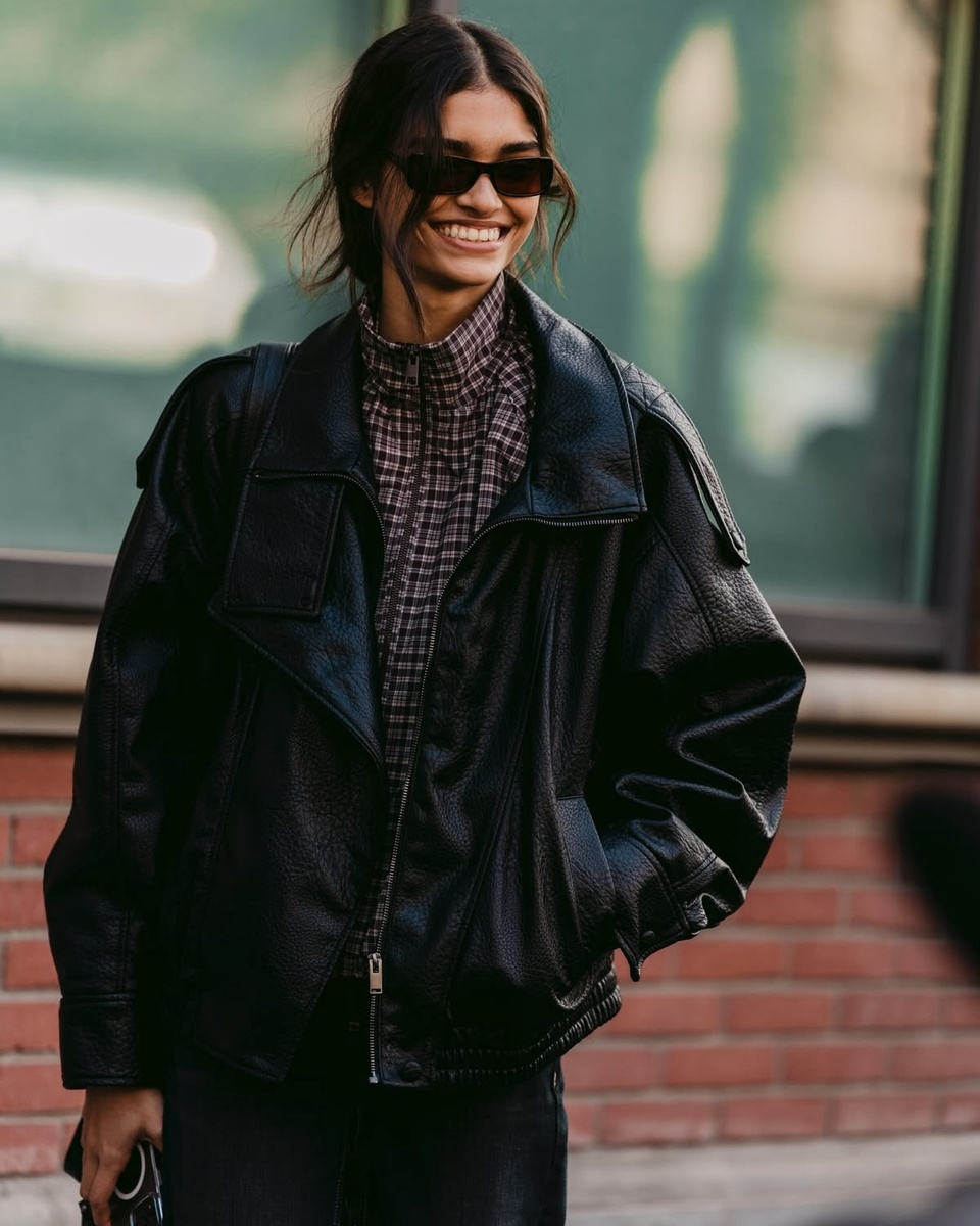 Первый - массивные кожаные куртки. Тренд не совсем новый, но это и круто - многим и докупать не придется. Кажется модные бренды и инфлюенсеры всерьез намерены вернуть мешковатые куртки из грубой кожи. Так много роскошных стилизаций с ними мы видели и на подиумах и в соцсетях.