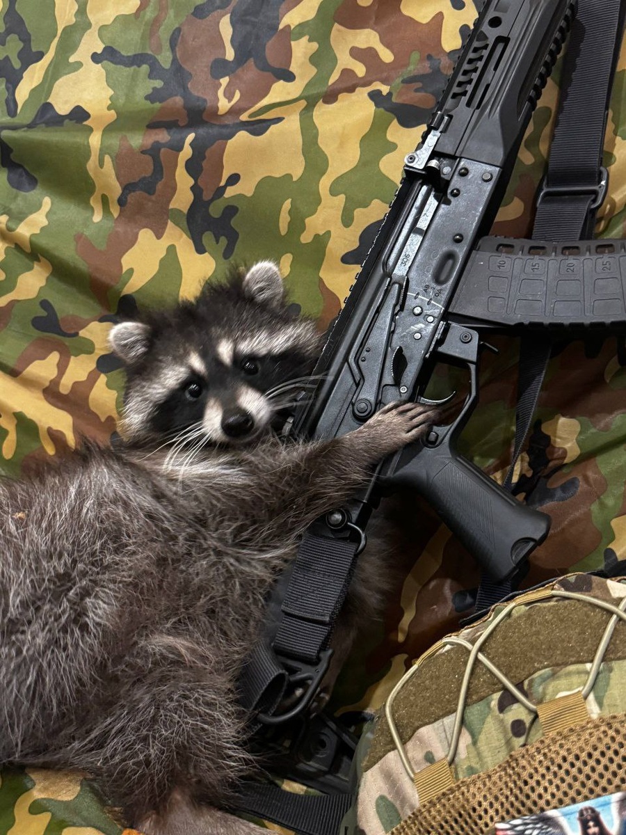 🦝 Сегодня у наших защитников особый гость — енот "Борис"