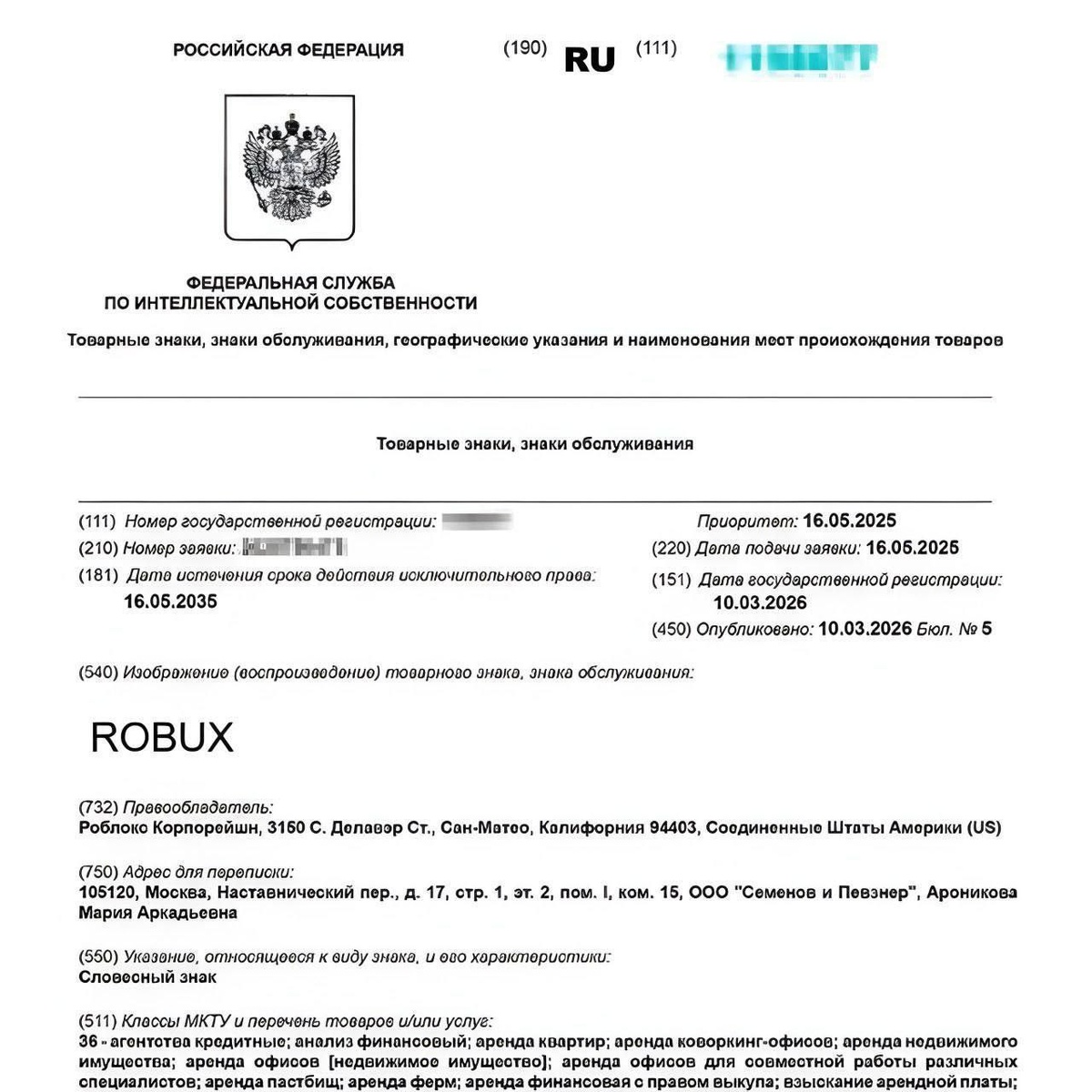Роспатент зарегистрировал товарный знак для виртуальной валюты Robux. Заявку разработчики игры подавали ещё 22 декабря — спустя почти три месяца её одобрили.