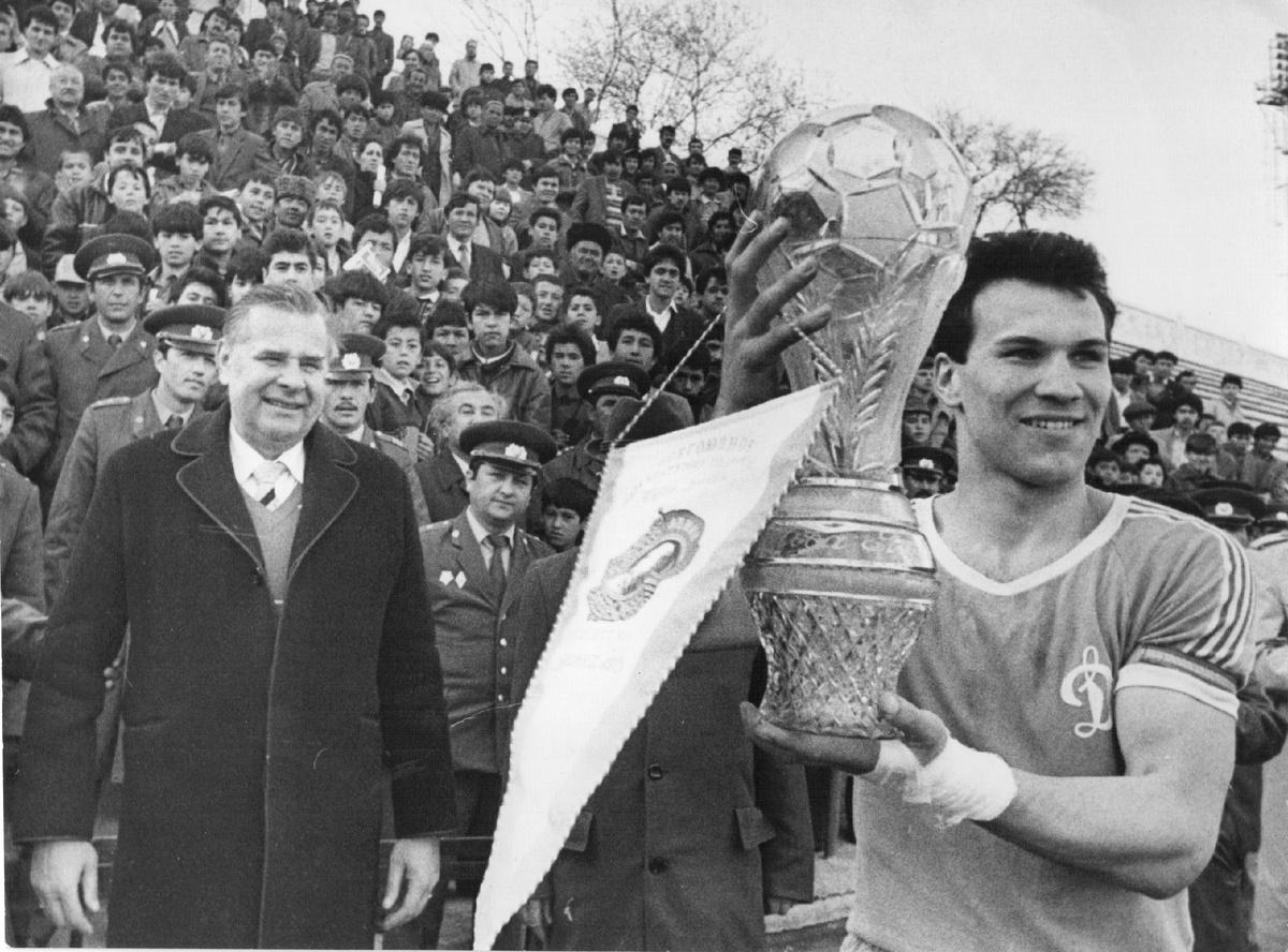 Через год в марте 1987-го в Самарканде кировчане и брянцы встречались на групповом этапе, где не удалось выявить победителя – 2:2. Матч вышел по- настоящему драматичным. Два гола В. Корнеева в первом тайме как могло показаться обеспечили брянской команде легкую победу, но затем они растеряли свое преимущество и Ф. Жангиров и Э. Рахмангулов отыграли для своей команды оба мяча с пенальти. Нужно сказать, что тот вояж на турнир динамовских команд на приз Льва Яшина в Самарканд, нашей команде удался. Брянцы выиграли его, получив из рук легендарного вратаря главный приз – хрустальный кубок.