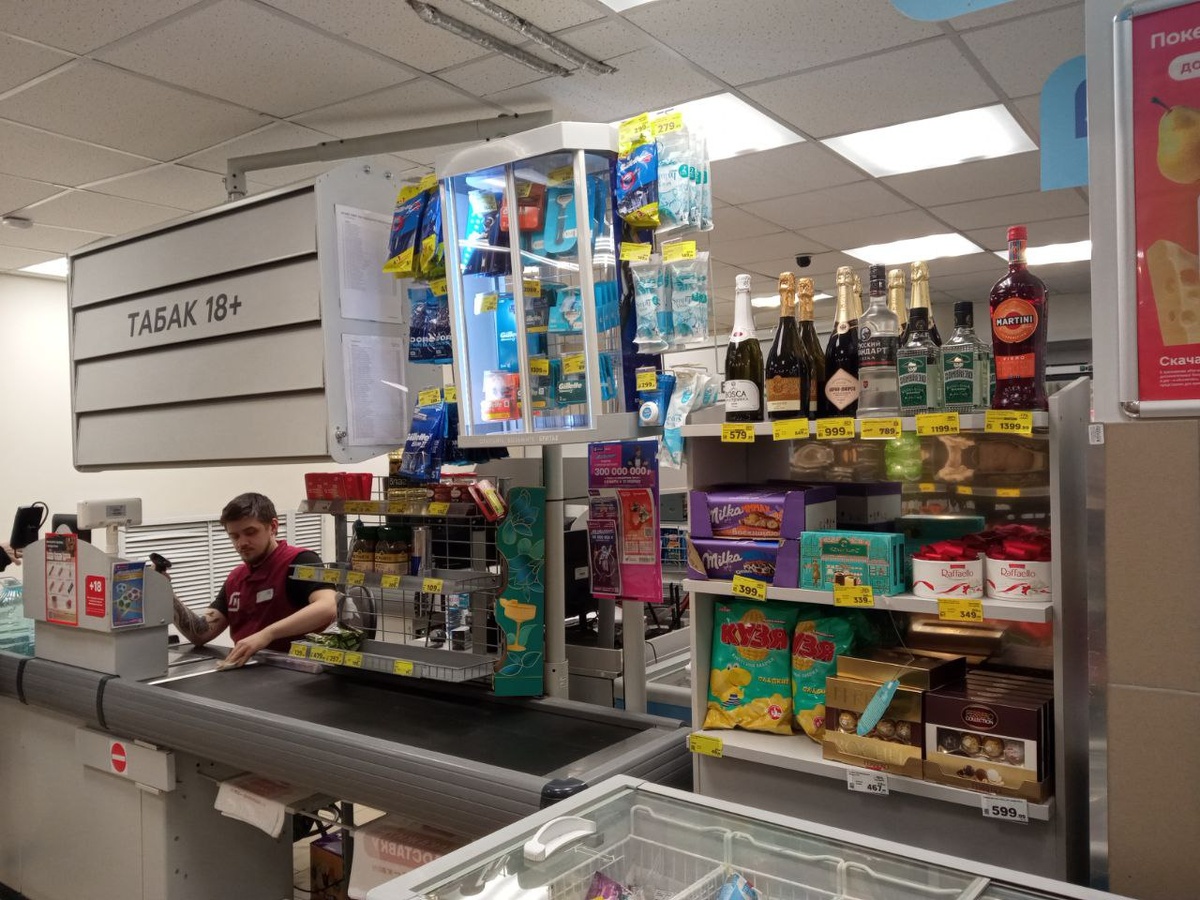 А я - нет. Просто с лекций только сейчас иду (для Минюста - я лекции слушаю, а не читаю) 18+ НАСТОЯЩИЙ МАТЕРИАЛ (ИНФОРМАЦИЯ) ПРОИЗВЕДЁН, РАСПРОСТРАНЕН И (ИЛИ) НАПРАВЛЕН ИНОСТРАННЫМ АГЕНТОМ КАВЕРЗИНОЙ СВЕТЛАНОЙ ВИКТОРОВНОЙ ЛИБО КАСАЕТСЯ ДЕЯТЕЛЬНОСТИ ИНОСТРАННОГО АГЕНТА КАВЕРЗИНОЙ СВЕТЛАНЫ ВИКТОРОВНЫ* * номер в списке Минюста 777 Итак. Фото из магазина Магнит, где я окормляюсь (ул. Героев труда) На кассе большой выбор спиртного. И нет ни одного презерватива. Наверняка, где-то в магазине есть, но не в видном месте, надо искать Возможно, это так совпало в этом магазине. Но ещё в одном Магните, где я бываю, тоже так. Так что думаю, это целенаправленная политика - Магнит как может участвует в демографической программе