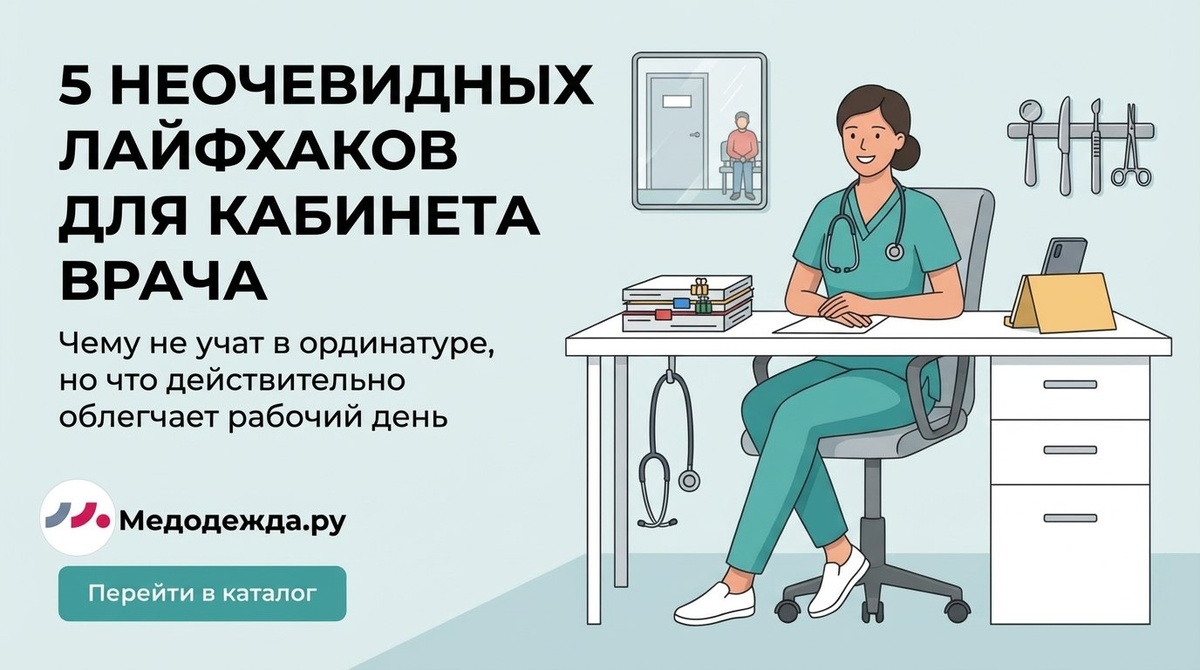 Не вешайте фонендоскоп на стену или спинку стула, откуда до него придётся тянуться. Закрепите прочный крючок сбоку столешницы на уровне колена: прибор висит удобно и доступен одной рукой, не мешает на рабочей поверхности. За день это экономит множество ненужных микродвижений.