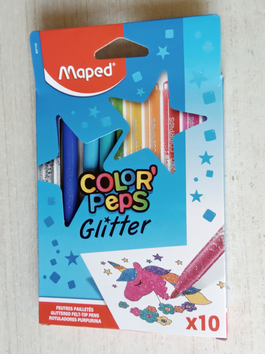 Но продолжу писать о творческих материалах с маленького набора фломастеров от Maped. От данного бренда у меня только карандаши. А теперь есть и блестящие фломастеры.