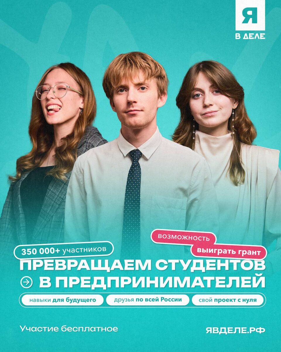🧑🏫 Это 9-й сезон федеральной программы по развитию молодежного предпринимательства. Здесь студенты собирают команды, придумывают бизнес-идеи и доводят их до реализации. В программу включено: • бесплатное обучение предпринимательству, • работа с наставниками и встречи с экспертами из мира бизнеса. 📂 За время работы проекта участие в нем приняло более 350 000 человек, создав свыше 22 000 стартапов. Участие во всех активностях программы бесплатно. Подробности — на сайте явделе.рф ⬆️ Программа реализуется при поддержке Минобрнауки России, Минпросвещения России и Росмолодёжи.