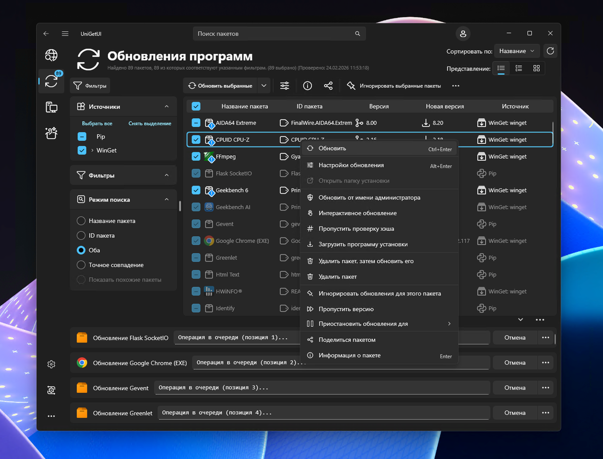 Вышла новая версия утилиты UniGetUI под номером 2026.1.0. Это выпуск номер 1 для популярного менеджера пакетов операционной системы Windows после приобретения проекта канадской компанией Devolutions. Программа объединяет возможности 7 систем установки, включая Winget и Chocolatey, в 1 графическом интерфейсе без использования командной строки. Сама программа UniGetUI представляет собой универсальный инструмент для управления программным обеспечением на компьютере. Приложение позволяет скачивать софт из популярных репозиториев, проверять наличие апдейтов и устанавливать свежие версии сразу для 2 и более программ за 1 процесс. Пользователи также могут просматривать точные номера сборок установленных приложений и безопасно удалять ненужные компоненты. Благодаря этому графическому интерфейсу управление сложными системами вроде Scoop, Pip или Npm становится простым и наглядным, полностью исключая необходимость вводить текстовые команды. В марте 2026 года стало известно о переходе проекта к н