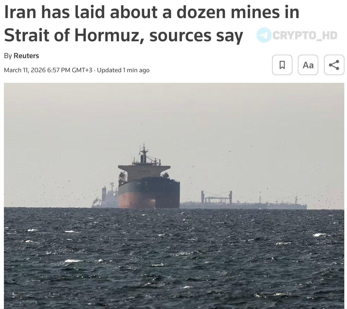 🇮🇷🇺🇸 Reuters: Иран установил около десятка мин в Ормузском проливе. Сегодня Дональд Трамп должен сделать заявление по стратегическим запасам нефти. Ранее: - решение МЭА - угрозы Трампа - война скоро закончится Crypto Headlines