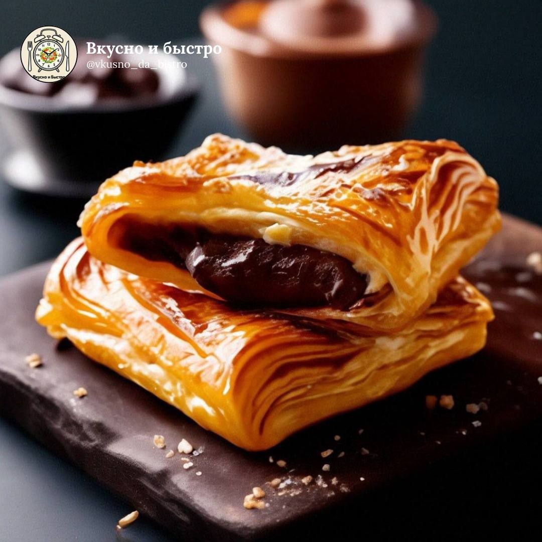 #десерт #выпечка #30мин 🕒 Время приготовления 30 мин Порции 4-6 Сложность: легко 🧾 Ингредиенты: 🟠Шоколад молочный — 1 плитка 🟠Слоёное дрожжевое тесто — 1 упаковка 🟠Желток — для смазывания 🟠Орехи или корица — по желанию 🍴Приготовление: 1. Раскатайте слоёное тесто в прямоугольник немного шире плитки шоколада. 2. В центр теста выложите плитку шоколада. Боковые стороны теста разрежьте на полоски шириной 2–2,5 см под небольшим углом. Угловые части аккуратно срежьте. 3. Сначала заверните верхний и нижний край теста на шоколад, затем поочерёдно переплетайте боковые полоски, формируя красивую «косичку». 4. Переложите заготовку на противень с пергаментом, смажьте взбитым желтком. 5. По желанию посыпьте орехами или корицей. 6. Выпекайте в разогретой до 200 °C духовке 15–20 минут, пока тесто не станет золотистым. Вкусно и Быстро | Мы в Мах 📲