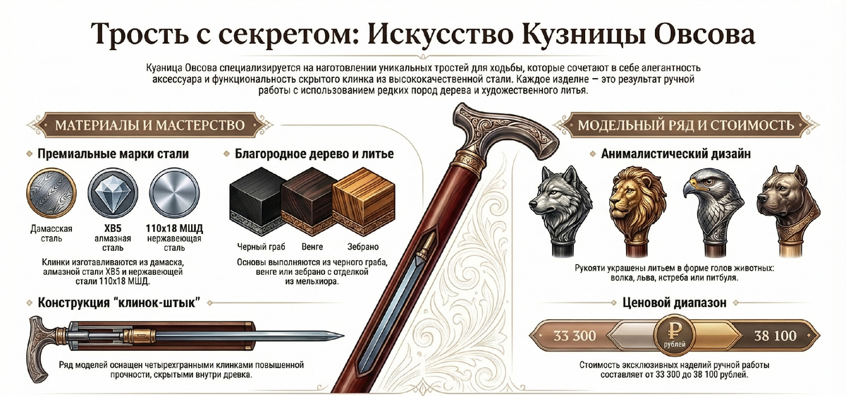 1. Сталь клинка — сердце трости ⚔️