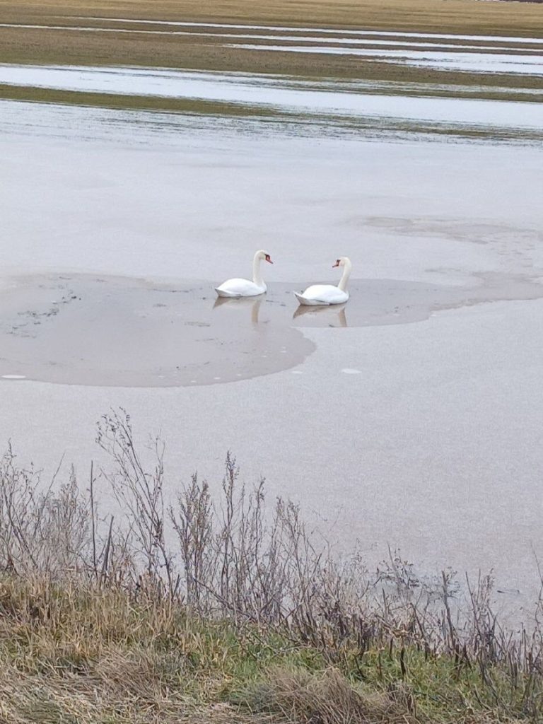 Весеннее озеро в Чирке стало временным пристанищем для лебедей