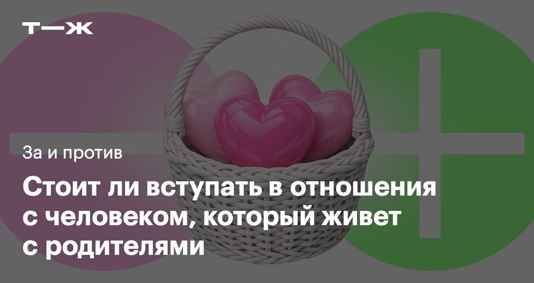 от родителей. А среди мужчин самостоятельную партнершу ищут 39% респондентов. Наши читатели рассказали, как они относятся к такому раскладу: 🚩👎 Я начала жить отдельно от родителей в 17 лет. При этом они продолжали меня обеспечивать, но все базовые навыки были освоены: готовка, уборка, стирка, планирование бюджета, закупка продуктов. Считаю, что жить отдельно от родителей очень важно. Тот, кто в 30 лет все еще остается с родителями, — для меня уже потерянный человек. Встречаться с таким я точно бы не стала. 👌👍 Жизнь бывает очень разной. Инфантильный маменькин сыночек, который не знает, как грязные носочки из-под дивана становятся чистыми и оказываются в шкафу, — это одно. Самодостаточный мужчина, который заботится о своих престарелых родителях, — совсем другое. И есть миллион промежуточных вариантов. Какие еще аргументы есть у обеих сторон: https://t-j.ru/m-tg/separation-pros-cons/