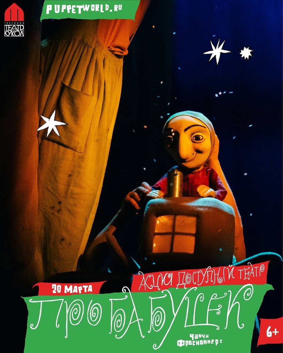 ❗️ ДОСТУПНЫЙ ТЕАТР : БИЛЕТ = 200 ₽. ✔️20 марта 11:00. «Про бабушек», 6+. Невыдуманные истории. Режиссёр: Чакчи Фросноккерс. Билетов раз-два и обчёлся👉🏼 vk.cc/cVhxuS. Все играют в куклы! puppetworld.ru ✈️ Театр кукол в Telegram 💙 Театр кукол ВКонтакте