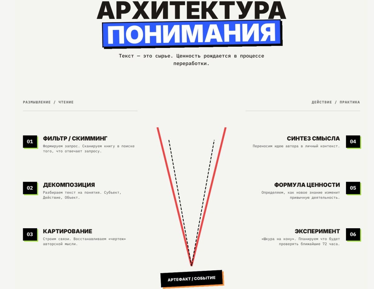 Решился я в прошлый поток переделать ПОЛНОСТЬЮ программу курса “Как (не)читать книги”, я буквально перелопатил все занятия и упражнения. Мне так понравился обновленный дизайн упражнений, что я решил пойти во “все тяжкие” и сразу после КнЧК запустить дополнительный факультатив для выпускников наших программ “Разбираемся в сложных вопросах”. При проектировании новой программы у меня получилось создать четыре дополнительных занятия + домашка (в новой итерации будет, скорее всего, пять занятий). Итак … у меня есть для вас две, нет три, новости: 14 апреля стартует последний в этом учебном сезоне курс “Как (не)читать книги”. Сразу после КнЧК всех выпускников ждет мега крутой и БЕСПЛАТНЫЙ курс “Разбираемся в сложных вопросах”, на котором мы “приладим” метод научного поиска к бытовым и профессиональным задачам. Курс РСВ непростой, нужно будет много думать и наблюдать за собой/проблемами/ситуациями между занятиями. Итак, всех, кто впрыгнет в этот поток (старта 14 апреля), ждут 6 занятий (дв