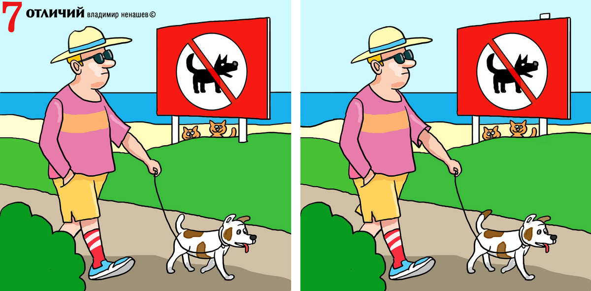 Быстрый тест. 7 отличий для внимания. Там, где котам можно, псам нельзя. Юмор, позитив.