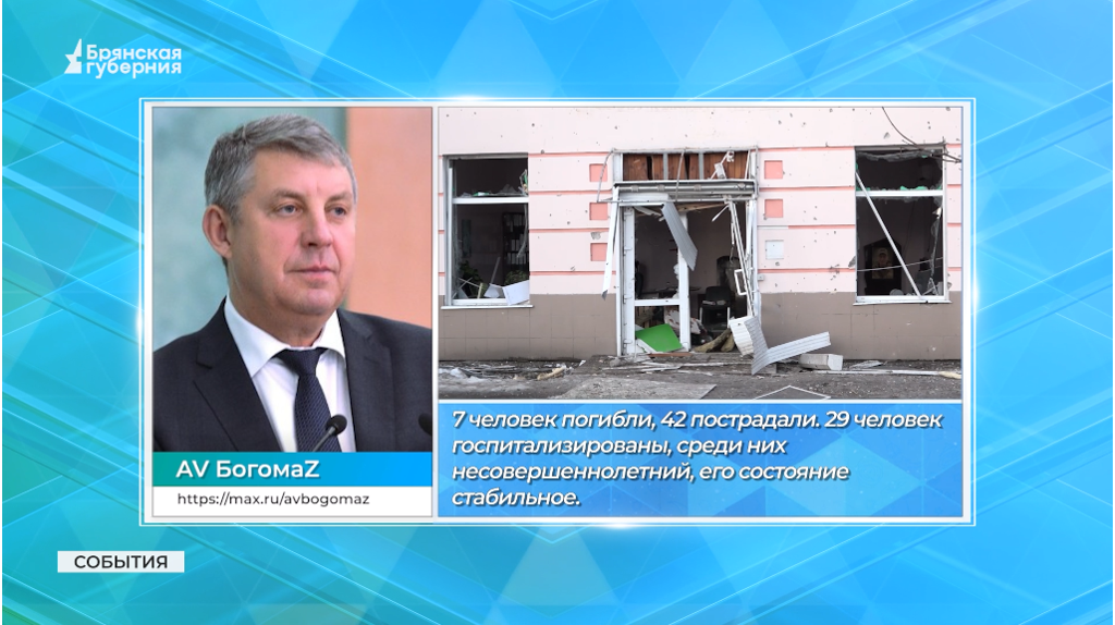 Вызывающе и демонстративно, подло и цинично украинские террористы 10 марта, в завершение рабочего дня, когда на улицах максимальное количество гражданских, совершили очередной бесчеловечный акт, ударив по центру Брянска дальнобойными ракетами британского происхождения. Киевский режим продолжает подлые преступления против мирных жителей, как он это делает с 2014 года. В результате ракетной атаки в Брянске погибли уже семь человек, более сорока раненых. В московские клиники отправили самых тяжелых. Горожане сплотились перед лицом небывалой угрозы и пришли на помощь тем, кто пострадал. Губернатор Брянской области благодарит за самопожертвование медиков и пожарных, буквально спасавших людей от гибели, волонтеров и строителей, которые теперь помогают тем, кто едва не лишился крыши над головой, восстанавливать их жилье. О том, как все службы в Брянске сработали как единый механизм, профессионально и оперативно, глава региона Александр Богомаз рассказал Сергею Карнаухову в авторской программе
