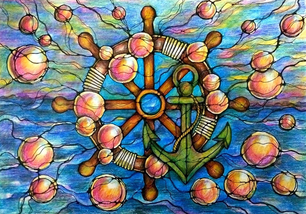 Алгоритм "НейроШтурвал". Я крепко держу в руках мой штурвал и верю, что впереди благоприятный исход задуманного непростого дела. Я ничего не боюсь. Это - мой шторм, моя ответственность. Верю и смело иду вперед." ✔️Каталог курсов Школы Нейрографики "Чистый Лист": https://neurograficaschool.ru/ #нейрографика #нейроарт #нейрографикаконкурс #психология #обучениенейрографике #арттерапия