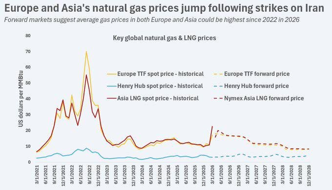 От этого особенно сильно пострадали европейский и азиатский рынки. Стоимость контрактов на СПГ выросла в среднем до 13 долл., что на 53% больше, чем в прошлом году. Покупатели пытаются найти газ, но найти свободные суда сложно. Кроме того, мощности заводов по сжижению газа ограничены. Поэтому цены будут оставаться высокими в течение длительного времени Безусловный беннфициар кризиса - США Стоимость СПГ на внутреннем рынке США в среднем составляет 3,63 долл. Компании продают газ из США в Европу или Азию по цене 12-13 долл. за тонну. Даже после вычета всех расходов они получают чистую прибыль в 200% @geonrgru | 🇷🇺 MAX | sponsr.ru