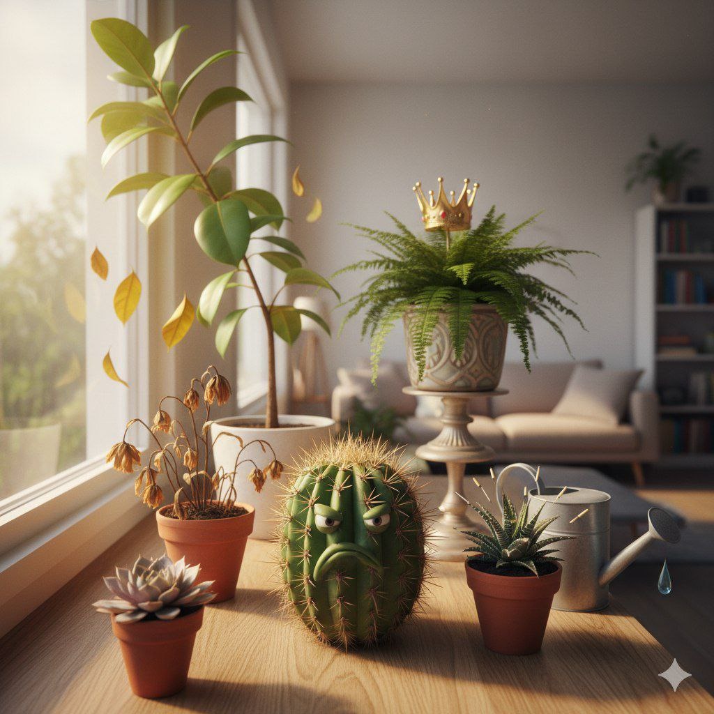 🌵🪴👀 Многие уверены, что цветы в горшках — это идеальные молчаливые питомцы. На деле же они — мастера пассивной агрессии, которые ждут, пока вы забудете их полить, чтобы эффектно завянуть прямо у вас на глазах. 💧🥀🎭 Тайная жизнь на подоконнике. Вы покупаете стильный фикус, обещая себе ухаживать за ним как за родным. Но через неделю он понимает, что попал в плен к человеку, который даже рыбок забывает кормить. Растение начинает играть в сложную игру на выживание: сбрасывает листья, меняет цвет и демонстративно наклоняется в сторону окна, словно пытаясь сбежать от вашего «заботливого» ухода. 🪴🏃♂️💨 Битва за свет. Вы переставляете горшки с места на место, пытаясь найти идеальный баланс. Растению же наплевать на ваши дизайнерские изыски. Оно считает, что вы просто не понимаете его тонкой душевной организации и специфических потребностей в освещении. В итоге вы стоите перед кактусом, оправдываясь, почему сегодня опять нет солнца, а он просто молча колет вас своими иголками. 🌵�