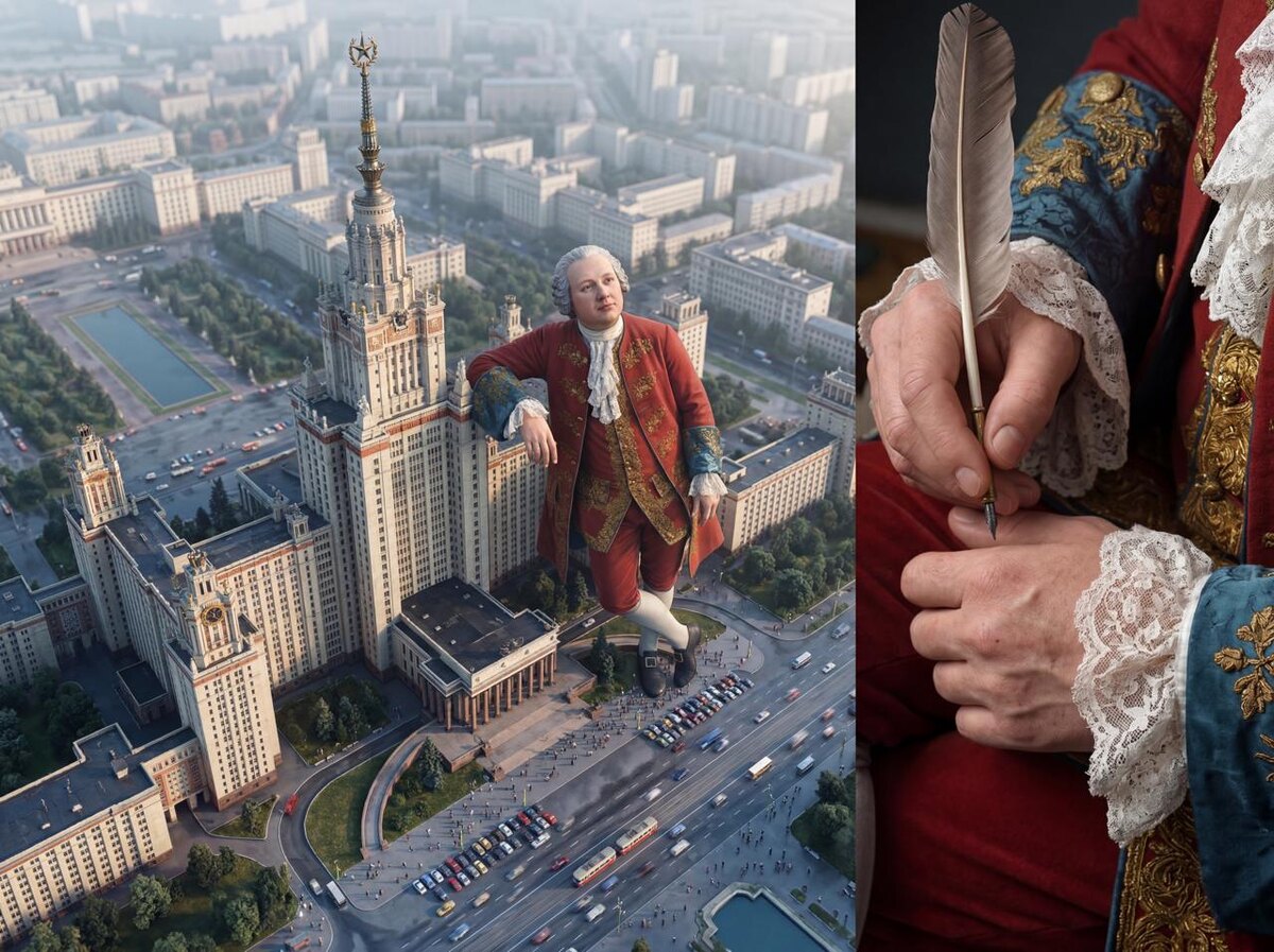 🏛 А что, если Ломоносов встанет рядом со своим университетом — в полный рост? Nano Banana 2 в LeoGPT превращает любую идею в фотореалистичную сцену с игрой масштабов. Загрузите портрет, опишите локацию — и получите кинематографичный кадр, где персонаж возвышается над целым городом. Где пригодится: ⭐️ Стоп-скролл визуал для соцсетей и обложка для Reels ⭐️ Креативная подача бренда или продукта на фоне города ⭐️ Нестандартные иллюстрации для презентаций и статей Как сделать: 1️⃣ Нажмите 🎨 Картинка → выберите Nano Banana 2 2️⃣ Прикрепите фото (портрет, персонаж, объект) 3️⃣ Отправьте промпт — пример ниже ⬇️ Using original image of Lomonosov. A highly detailed photorealistic aerial photograph, shot from above a huge model in his original clothing. In Moscow, near Lomonosov Moscow State University. The giant stands next to the main MSU building, equal in height to him. He leans against the building in a relaxed pose and looks into the camera. Tiny people and cars are grouped at his fe