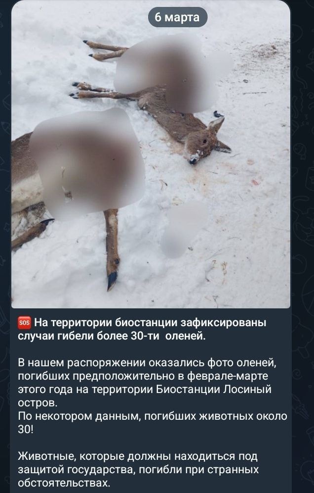 ». Информацию о гибели 30+ животных при странных обстоятельствах, которая сопровождалась фотографией двух окровавленных тушек оленей, назвали фейком, при этом фактическое количество погибших животных не озвучили🤷♂️ Сотрудники Лосиной биостанции рассказали, что этой зимой действительно были единичные случаи нападения бродячих собак на пятнистых оленей. Каждый инцидент официально зафиксирован с участием ветеринаров и полиции, но ни о какой массовой гибели речи не идёт. Видео: 360 Мытищи 📱 Подписаться ✉️Прислать новость 📲Читать в MAX