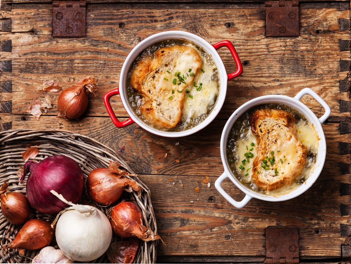 Карабаччиа — жемчужина флорентийской кухни XVI века, исторический предок знаменитого французского лукового супа. Именно Екатерина Медичи привезла этот рецепт ко двору Франции, где он завоевал сердца аристократов. Название происходит от греческого "karabos" — "лодка в форме скорлупы", намекая на форму глубокой миски, в которой его традиционно подавали. Что делает этот суп особенным? Сладкий тосканский лук из Чертальдо, томлённый до карамельной мягкости, и тонкий баланс миндаля, винного уксуса, пряной корицы и сахара. Идеальное блюдо для морозного вечера! Очищаем лук и нарезаем тонкими полукольцами. Перекладываем его в вместительную кастрюлю, желательно с толстым дном, и щедро поливаем оливковым маслом. Пассеруем на очень слабом огне в течение 20-30 минут, пока лук не станет мягким и прозрачным. Главное — не спешить и не дать ему подгореть! Когда лук стал мягким и сладким, добавляем толчёный миндаль (он придаст супу благородную бархатистость), щепотку корицы, уксус и сахар. Перемешиваем