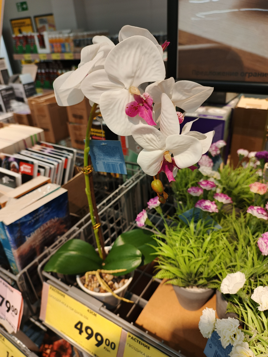 Декоративное растение в горшке орхидея высотой 43 см. Не требует полива или особого ухода, идеально подходит для занятых людей или тех, кто не имеет опыта в растениях. Этот декоративный элемент отлично впишется в любой уголок вашего дома — от уютной гостиной до стильной спальни, а также станет прекрасным подарком для мероприятий Цена 499 рублей.